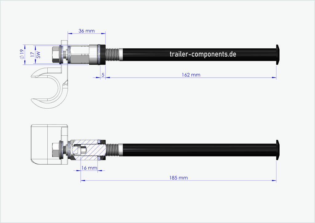 - È responsabilità dell'utente determinare la corretta dimensione della filettatura e la lunghezza di installazione [mm] dell'attuale perno passante sulla ruota. Non tentare di montare il nostro perno passante con adattatore in una dimensione di filettatura diversa nel mozzo della ruota posteriore. Una filettatura non corretta può danneggiare la bicicletta. Se non siete sicuri della corretta dimensione della filettatura e della lunghezza di installazione, contattateci via e-mail o telefono e saremo lieti di aiutarvi.