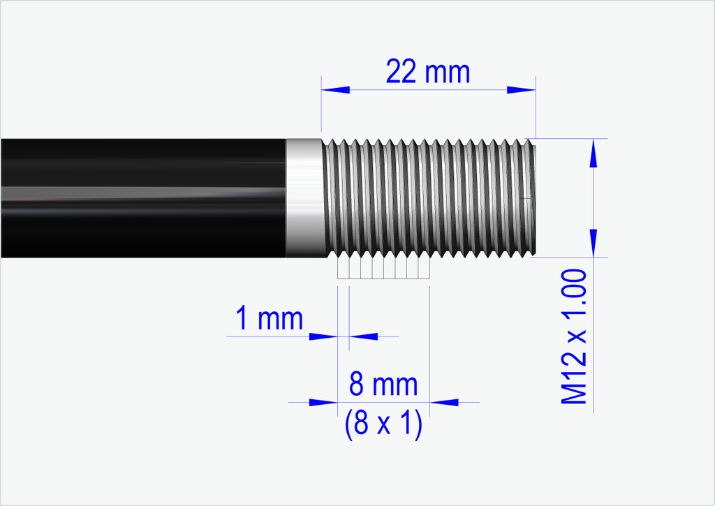 Ogni nostro perno passante è personalizzato per voi. Abbiamo bisogno dell'esatta lunghezza di installazione [mm] e della dimensione della filettatura (passo) del perno passante attualmente installato.